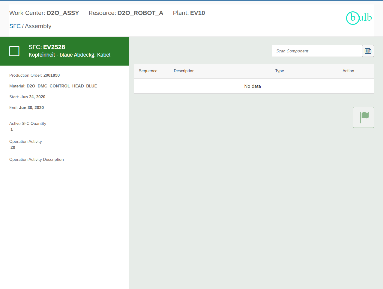 The scan must include the header of “” as well as the data format “06” to be interpreted properly. See example barcode below: 06{GS}11ZComment Test{GS}19PBRACKET{GS}T002_LOT{GS}15S1234-ES{RS}{EOT} Will return the following information: